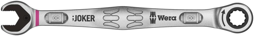 Высококачественный метрический комбинированный гаечный ключ с трещоткой фирмы Wera: всё, что должен делать гаечный ключ, и даже много больше. Быстрее, лучше, красивее. Прямо-таки настоящий Joker. Новое поколение комбинированных гаечных ключей с трещоткой для шестигранных винтов и гаек. С фиксирующей функцией с помощью металлической пластины в рожковой части, которая снижает риск потерять винт или гайку. Сменная металлическая пластина в рожковой части своими сверхтвердыми зубцами фиксирует винты и гайки и снижает риск их соскальзывания. Имеющийся упор может предотвратить соскальзывание ключа вниз с головки винта и позволяет приложить большее усилие. Форма двойного шестигранника обеспечивает плотный обхват винта или гайки и тем самым снижает риск соскальзывания. Угол возврата всего 30° в рожковой части исключает потерю времени на перекидывание ключа при завинчивании. Конструкция трещотки в накидной части ключа с необычайно тонким механизмом зацепления на 80 зубцов для гибкой ра