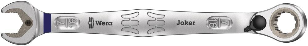 Комбинированный гаечный ключ Joker с изогнутой трещоткой и переключателем реверса. С фиксирующей функцией на основе металлической пластины в рожковой части, которая снижает риск потерять винт или гайку. Имеющийся упор может предотвратить соскальзывание ключа вниз с головки винта и позволяет приложить большее усилие. Сменная металлическая пластина в рожковой части своими сверхтвердыми зубцами фиксирует винты и гайки и снижает риск их соскальзывания. Форма двойного шестигранника обеспечивает плотный обхват винта или гайки и тем самым снижает риск соскальзывания. Угол возврата всего 30° в рожковой части исключает потерю времени на перекидывание ключа при завинчивании. Конструкция реверсной трещотки в накидной части ключа с необычайно тонким механизмом зацепления (80 зубцов) обеспечивает свободу действий даже в тесном пространстве. Точная даже на слух работа трещотки. Прочный стопор из двух элементов позволяет кроме того работать с экстремальными нагрузками. Наклон трещотки на