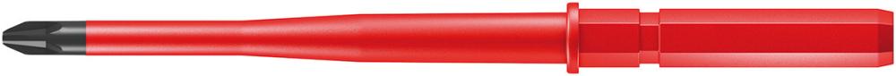 Сменная отвёртка с зауженным стержнем и защитной изоляцией, с помощью которой можно достать расположенные в глубине винты и пружинные зажимы. Инструменты проверены поштучно по стандарту IEC 60900. Поштучная проверка под напряжением 10000 В для безопасной работы на оборудовании с максимально допустимым напряжением 1000 В. Наконечник Wera Black Point обеспечивает точность работы и оптимальную защиту от коррозии.