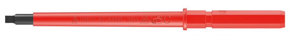 Сменная отвёртка VDE для системы "Одна ручка — много насадок" Kraftform Kompakt для моментальной смены насадок без специального инструмента. Рабочие концы проверены поштучно по стандарту IEC 60900. Поштучная проверка под напряжением 10000 В для безопасной работы на оборудовании с максимально допустимым напряжением 1000 В.