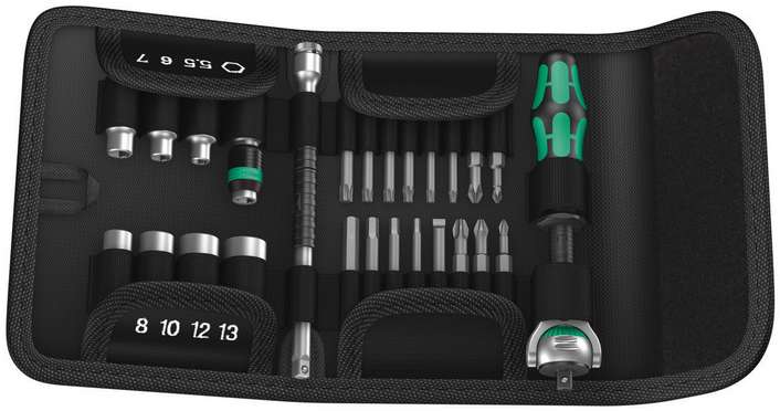 Невероятно компактное размещение большого числа инструментов в небольшом объеме. Абсолютно новое восприятие набора с трещоткой благодаря оригинальному мягкому футляру, обладающему высокой прочностью и долговечностью. Футляр с возможностью вертикального размещения для лучшего обзора инструментов на полке в мастерской. Матерчатая фактура футляра служит для дополнительной защиты рабочих поверхностей. Малый вес и объем — для повышения мобильности. С индикаторами инструментов "Take it easy": цветовая маркировка размера.