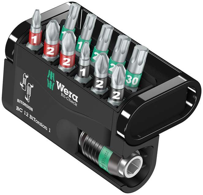 Закалённые до вязкой твёрдости биты, для универсального применения. Биты Bi-Torsion с эластичной торсионной зоной, в которой гасятся пики нагрузки кинетической энергии. Более мягкая зона системы Bi-Torsion для предотвращения скручивания наконечника бита при высоких нагрузках. За счёт этого значительно возрастает срок службы изделия. Срок службы увеличивается выбором соответствующего держателя. Технология Rapidaptor позволяет ставить биты даже без применения гильзы. Извлечение битов осуществляется простым сдвиганием гильзы вперед — моментальная смена битов даже одной рукой. Для битов с шестигранным хвостовиком 1/4" по стандарту DIN ISO 1173-C 6,3 и E 6,3. Для установки в шуруповерт или патрон электродрели. Многокомпонентные наборы Bit-Check подкупают своим малым весом и максимальной компактностью. При этом мягкий материал подложки обеспечивает одновременно надежность фиксации битов и легкость их извлечения. Профиль и размер битов легко определяются благодаря идентификаторам инст