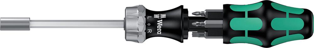 Компактный инструмент Wera Kompakt с многокомпонентной ручкой Kraftform для высокой скорости работы при особой эргономичности. Встроенный в ручку магазин, в котором можно хранить 6 битов. Выдвижной стержень можно задвинуть для работы в ограниченном пространстве. Его также можно извлечь для использования с электроинструментом. С сильным постоянным магнитом для надёжной посадки бита.