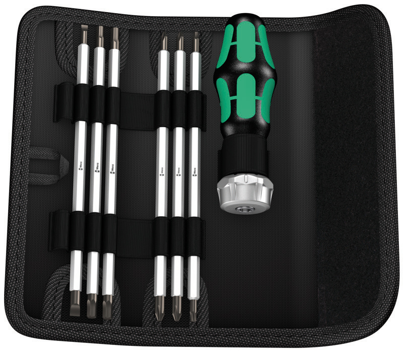 Складная сумка с битами длиной 89 мм. Набор включает ручку-держатель 3816 R Kraftform с быстрозажимным патроном "Rapidaptor" и многокомпонентной ручкой Kraftform для малоутомительной работы. Из специальной стали, что исключает распространение контактной ржавчины. 17 предметов.