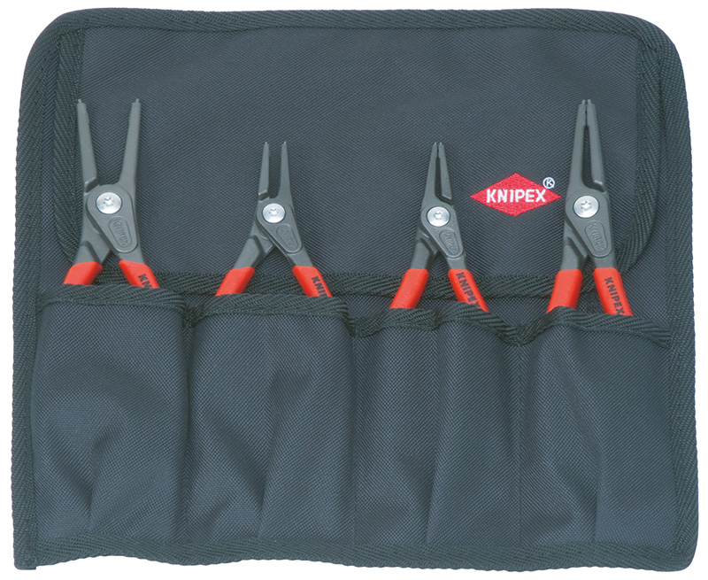 00 19 57 Набор щипцов для стопорных колец мягкий планшет из прочного полиэстера. практичная моментальная застежка с регулировкой. 4 модели популярных прецизионных щипцов для стопорных колец, для больших нагрузок. Размеры, в открытом состоянии (Д x В): 315 x 275мм. карта самообслуживания/ блистер. Комплект поставки: 1 x 48 11 J1 KNIPEX Прецизионные щипцы для стопорных колец для внутренних стопорных колец (Ø 12 — 25 mm), 1 x 48 11 J2 KNIPEX Прецизионные щипцы для стопорных колец для внутренних стопорных колец (Ø 19 — 60 mm), 1 x 49 11 A1 KNIPEX Прецизионные щипцы для стопорных колец для внешних стопорных колец (Ø 10 – 25 mm), 1 x 49 11 A2 KNIPEX Прецизионные щипцы для стопорных колец для внешних стопорных колец (Ø 19 – 60 mm),