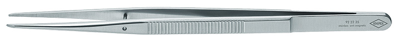 92 22 35 пинцет захватный прецизионный Универсальный пинцет подходит для требований стандартных областей применения и прецизионных задач. Широкий выбор вариантов конструкции: прямые, угловые, с гладкими или шершавыми захватными поверхностями и ручками, со вставочными иглами, с узкими или тупыми наконечниками, а также в различных вариантах длины. Для электронной промышленности, часовщиков и ювелиров. Высококачественная нержавеющая сталь: чрезвычайно прочная и очень хорошая коррозионная стойкость к различным атмосферным воздействиям и многим агрессивным материалам. — Поверхность: матовая поверхность — исполнение: прямой — Ширина наконечников (A): 0,5mm — Ширина наконечников (B): 0,5mm — Устойчивость к коррозии: да — Кислотостойкость: очень хорошо — Проверено на электростатическое разряжение: нет — Испытано на соответствие нормам VDE: нет — Отрасли: Промышленность Электроника — Магнитный: ненамагничиваемость (80%)