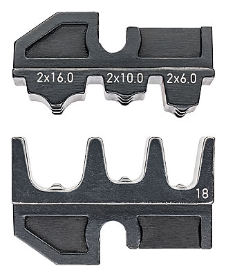 97 49 18 Плашка опрессовочная . . Применение: двойные втулки для двух гибких проводов 2 x 6 / 2 x 10 / 2 x 16 мм². — Применение: cдвоенные контактные гильзы для приема двух гибких проводов — Параметры кв.мм: 6 / 10 / 16mm² — Количество гнезд: 3 — AWG: 2 x 10 / 2 x 8 / 2 x 6