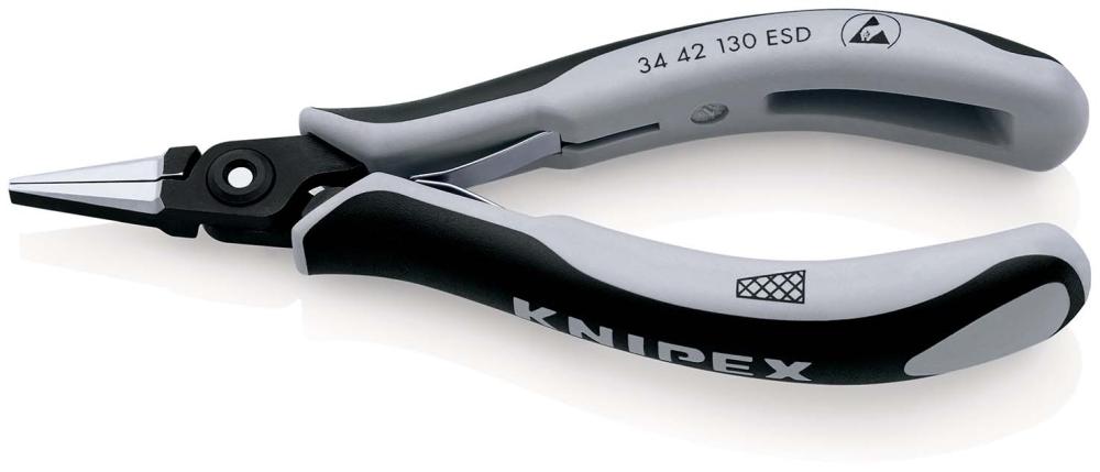 Плоскогубцы захватные прецизионные для электроники ESD, плоские широкие губки с насечкой, 130 мм, 2-