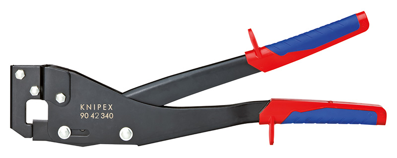 90 42 340 Просекатели для монтажа профилей для прочного соединения профильных металлических листов, применяемых для перегородок и подвесных потолков. для коробчатых и угловых профилей с макс. толщиной листа 1,2 мм (2 x 0,6 мм). минимальное усилие благодаря оптимальному передаточному отношению рычагов. — Параметры мм: макс. 1,2 (2 x 0,6)